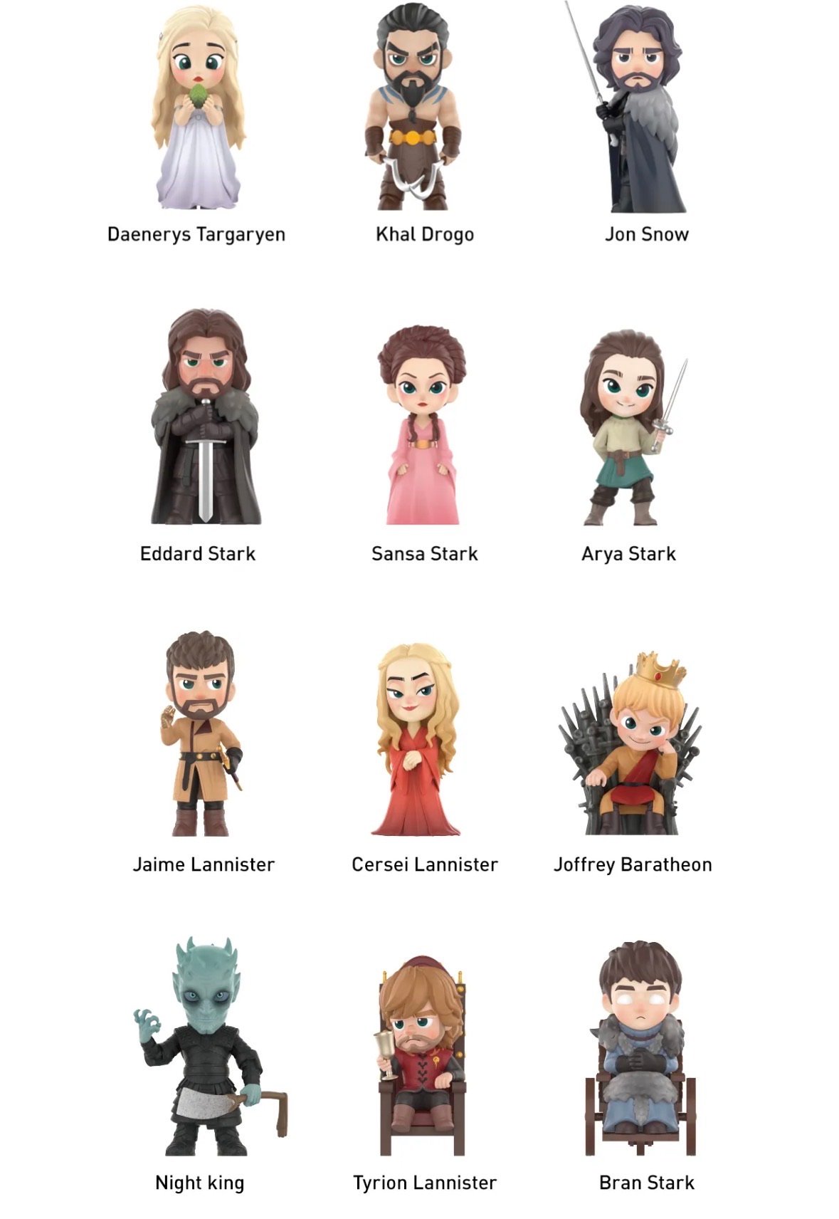 كل شخصية مصممة بعناية فائقة لتجسد تفاصيل أبطال الممالك السبع مثل: