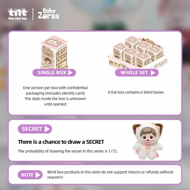سلسلة “Fluffy Cabin” من TNT SPACE تجلب الدفء والنعومة إلى عالم المجسمات، من خلال شخصية زُورا (Zoraa) التي تأتي بزيٍّ مكلَّل بالفرو وتُجسّد أجواء الراحة المنزلية والحيّز الدافئ. كل دمية في هذا الإصدار تأتي داخل صندوق مفاجأة (Blind Box)، لتمنح هواة الجمع تجربة مليئة بالإثارة عند الفتح. تصميم ناعم وألوان لطيفة تجعلها هدية رائعة أو إضافة فنية لأي مجموعة.