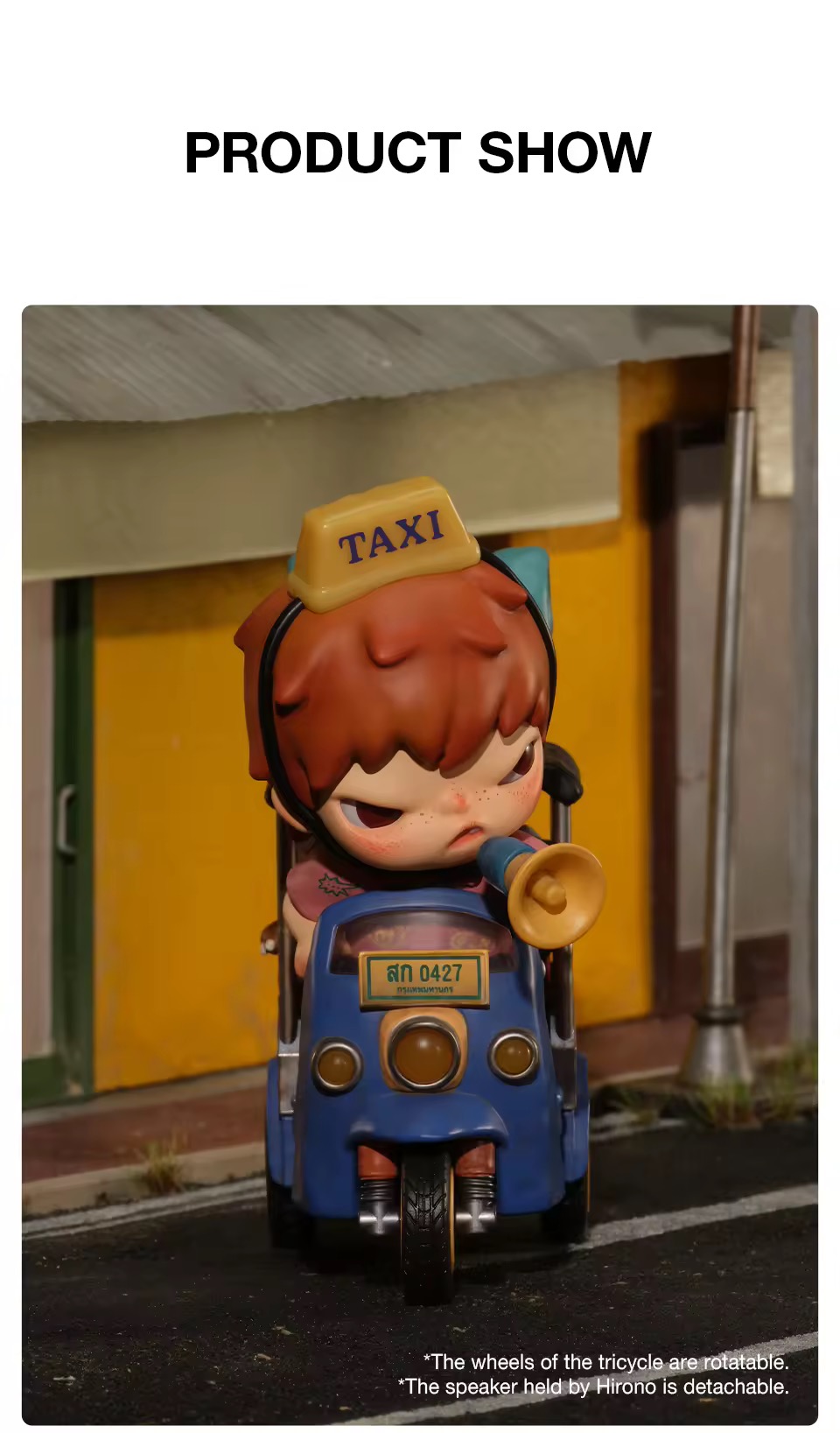 يأخذك مجسم هيرونو – Tuk-Tuk في رحلة فنية مستوحاة من أجواء المدن النابضة بالحياة، حيث يظهر هيرونو داخل مركبة التوك توك بتفاصيل دقيقة تعكس روح التنقّل والمغامرة اليومية. يجمع التصميم بين الطابع الهادئ لشخصية هيرونو والمشهد الحيوي للمركبة، ليقدّم قطعة فنية مليئة بالحكاية والتفاصيل.