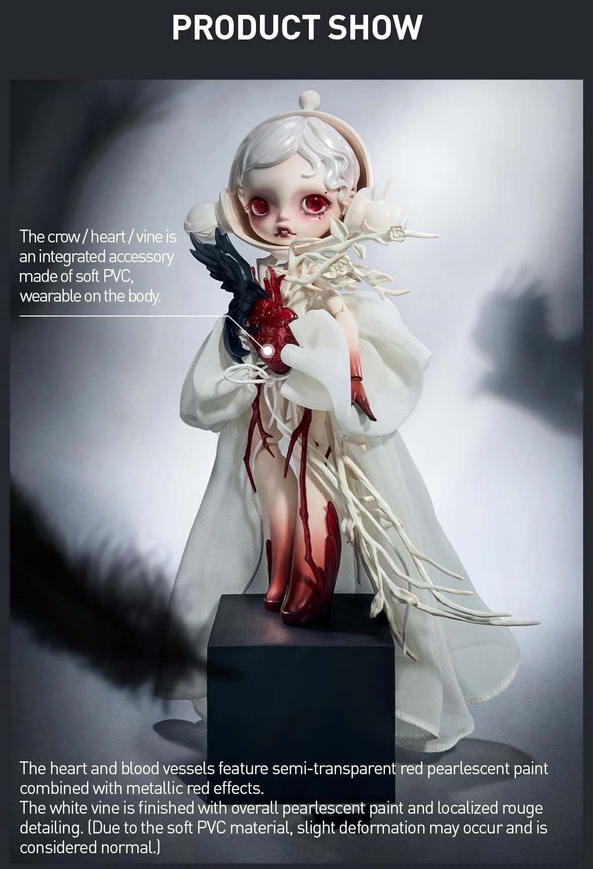 يتميز المجسم بتفاصيل دقيقة في الملابس والإكسسوارات مع تصميم أنيق يعكس شخصية SKULLPANDA الغامضة والفنية، مما يجعله قطعة مميزة لهواة الجمع ومحبي المجسمات الراقية.