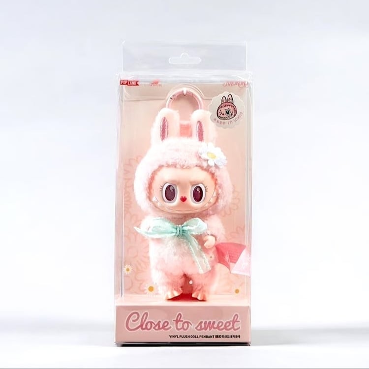 من شخصية Labubu المحبوبة عالمياً، يأتي إصدار Mokoko Close To Sweet بتصميم لطيف ومشاغب، مستوحى من أرنب صغير بقوس أخضر وشعر وردي، مع ابتسامة طفولية ناعمة وأذنين بارزتين🌸.
