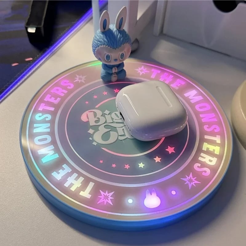 استمتع بشحن لاسلكي سريع وأنيق مع هذا الشاحن من سلسلة The Monsters Big into Energy! يتميز بتصميم جذاب مستوحى من طاقة شخصية Labubu الكرتونية—حامل شحن عملي يجمع بين التقنية والفن بمنتهى الروعة.