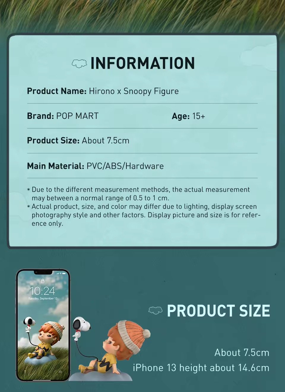 يجمع مجسم هيرونو × سنوبي بين عالم Hirono الهادئ وعالم Snoopy الكلاسيكي في تعاون فني مليء بالمشاعر والحنين. يظهر هيرونو بجانب سنوبي بأسلوب لطيف يعكس لحظة هدوء وتأمل، مما يخلق مشهداً دافئاً يجمع بين البراءة والخيال.